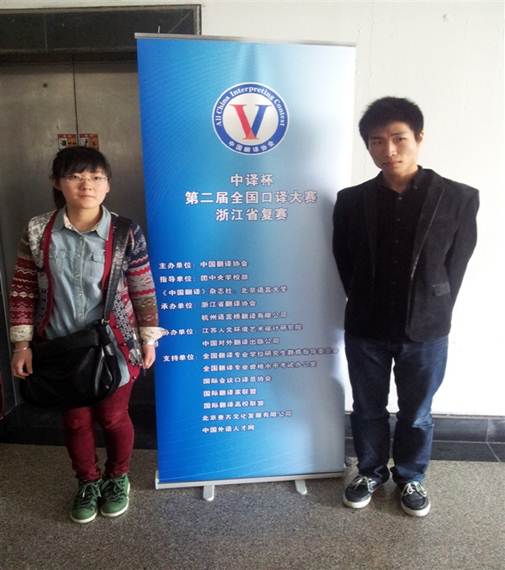 从今年2月份开始,相渊和陈峰同学在亢永兴,蒋丹和武振伟老师的指导下,从扩充词汇量,提高听力,掌握口译技巧,到不断进行口译实战演练。这次大赛取得的成绩凝聚着参赛选手以及指导老师的辛勤努力和付出,是我院英语教学改革所取得的的成果之一。