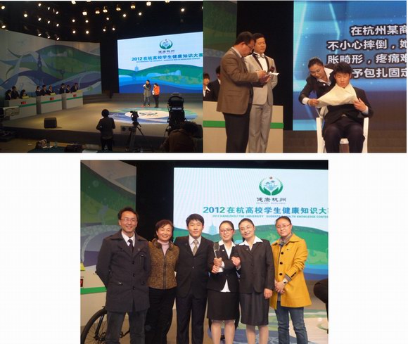 本次高校健康知识大赛分为资格赛、校内赛、分组复赛和决赛四个阶段,大赛于2012年5月31日正式启动,受到广大在杭高校学生的响应,资格赛期间,各高校学生通过网上答题形式参加资格赛,超过得分要求者获得参加校际赛的资格。大赛共有21万个IP地址访问、105万人次点击浏览大赛个人资格赛网络平台,自网站开通以来已有30075名全日制在杭高校学生登录网络平台实名制参与健康知识答题。校内赛后,共有27支高校参赛队伍晋级分组复赛。分组复赛采用团队拓展、定向越野竞技、健康知识答题、有轨电车、三人四足、空中抓杆和健康知识大考验等形式进行。经过激烈角逐,我院代表队、浙江传媒学院、浙江金融职业学院等6支参赛队伍,晋级2012在杭高校学生健康知识大赛决赛。