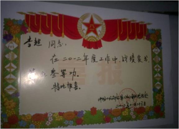学院环监101李超、机电082汪帆、机电084 徐俊飞三位同学于2010年冬季应征入伍,他们牢记学院老师和同学的嘱咐,没有辜负家乡人民的希望,在部队勤学苦练军事技术,认真做好本职工作,在部队二年的时间里,由于战绩突出,表现出色,李超同学荣获个人三等功一次,汪帆、徐俊飞被部队评为优秀士兵,这既是他们个人的荣誉也是我们学院的光荣。