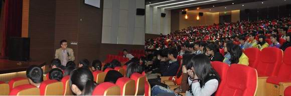 李育新博士针对当前的教育、学习方式为在场师生分析了当代大学生应该以怎样的视角来看待当前所处的位置,同时用亲身经历启迪大学生寻找梦想与现实的结合点,为万向学子的努力拨开“迷雾”,指引万向学子去实现自己的“梦”。