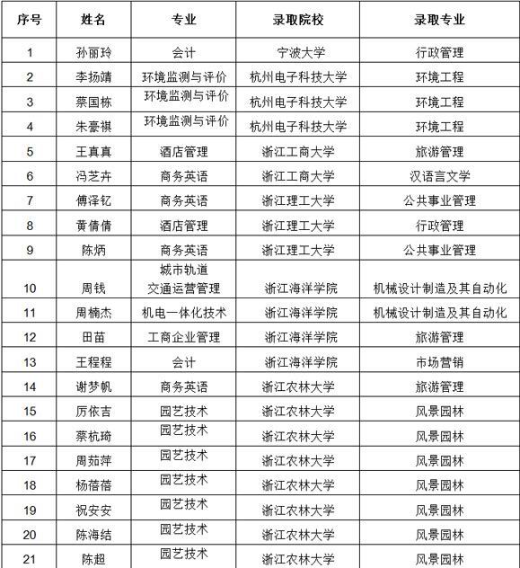近日,从浙江省教育考试院传来喜报,我院共有66人分别被宁波大学、杭州电子科技大学、浙江工商大学、浙江理工大学等高校录取。?xml:namespace>