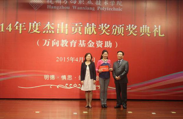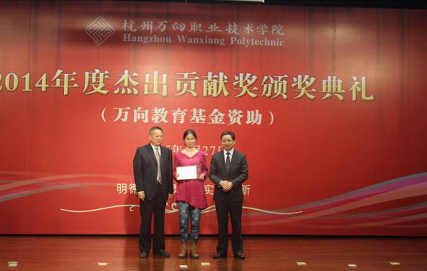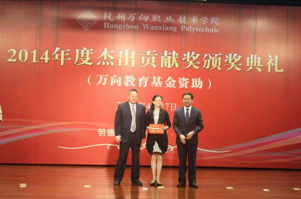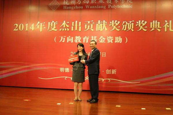 据了解,“杰出贡献奖”是由万向教育基金资助,旨在奖励本年度内提升学院内涵与实力、教学与科研、品牌与形象,推进学院国际化进程,促进学院长期良性发展等方面做出有全面性杰出贡献、具有优良师德师风的教职工。激励教职员超越自我,在教职员中树立学习模范。