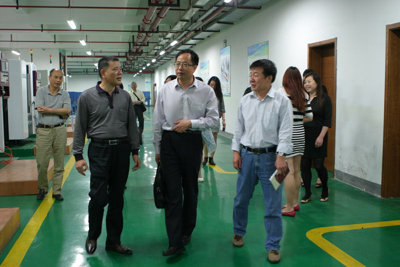 教务处鲍时安处长、应用工程系孙立波主任陪同上海考察团参观实训室