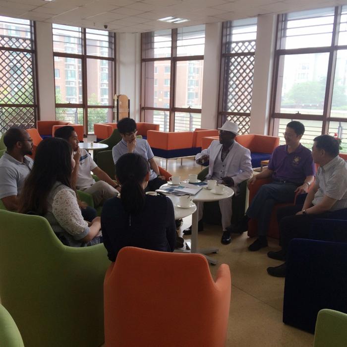 5月29日,武汉商学院外语系主任王勇一行来我院调研,调研的主要内容是外籍教师管理和英语教学改革等。通识教育系副主任李德贵、公共英语团队负责人韩晓华、英语教师单雪雯、外籍教师Nobel和David接待了客人。