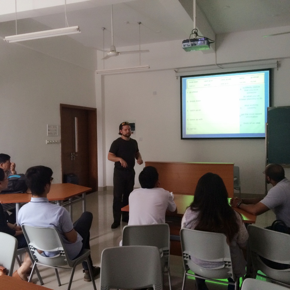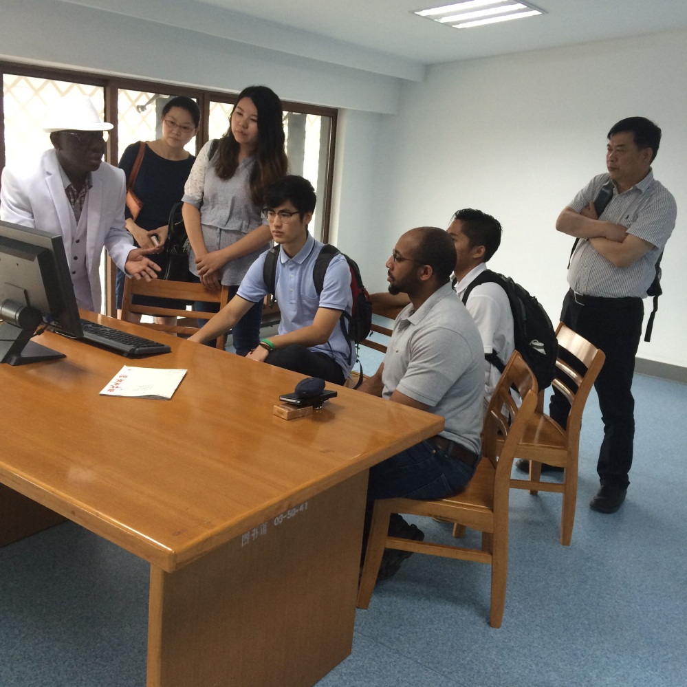上午9:00,武汉商学院考察组一行在学院图书馆与我院英语教学团队进行了热烈的交流。首先,李德贵副主任带领考察组参观了外籍教师办公室和建设中的英语自主学习中心,并就我院英语教学的特色定位、团队建设、模式改革、外教管理、英语竞赛等方面向来宾做了详细介绍。接着,外教Nobel和David分别向来宾分享了他们在英语教学过程中的经验和方法,Nobel在英语自主学习中心演示了英语自主学习平台的使用,David在教室现身说法,介绍了如何组织英语课堂教学活动。最后,韩晓华老师介绍了我院英语分层教学的方法和经验。