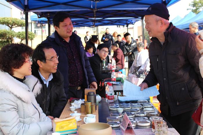 “这是普洱,这是肉桂,这是滇红,那是君山银针。”万向职院党办主任高级茶艺师导师吴奕兆老师热心地向居民作着介绍,“白茶不炒不揉,萎凋干燥;漳平水仙,喝了忘不了。”品上一杯,居民们连连赞叹:香!香!香!大爷大妈们更是一杯又一杯,拿着宣传单页仔细研究:“绿茶防癌,降血压;白茶保肝护肝,降火消炎……”