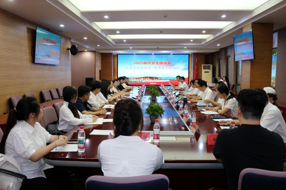毕业典礼前,学院还组织召开了2025届毕业生代表座谈会,学院院长牟惠康等院系领导与毕业生代表亲切交流,认真倾听他们在校的成长故事、对母校的意见建议和未来的职业规划。牟惠康院长代表学院向毕业生代表赠送《领潮:鲁冠球传》和诚挚祝福,并对大家提出三点期望:一是践行鲁冠球精神,追求人生意义;二是坚定校训导向,坚持三创;三是恪守全人目标,懂得感恩。